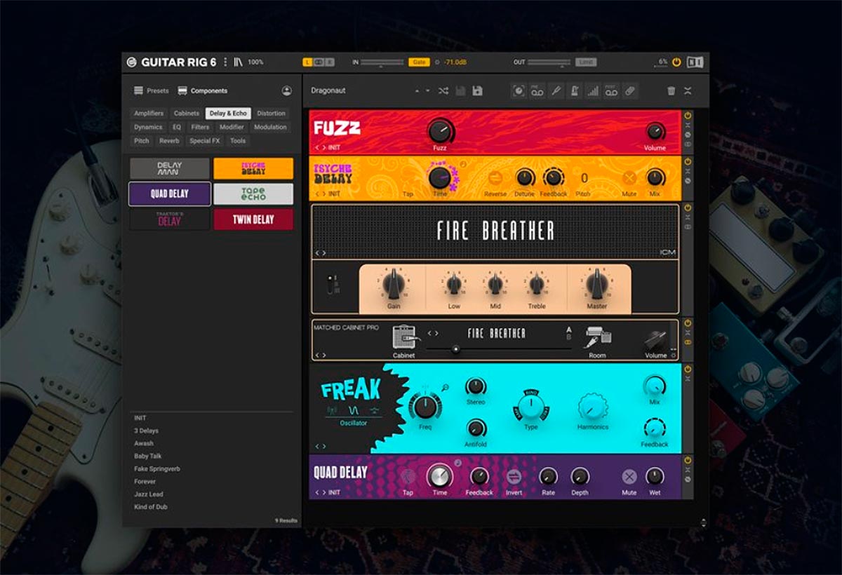 GUITAR RIG 6 PRO comes loaded with an inspirational collection of presets from a variety of heavy hitting guitarists, bassists, producers, and songwriters including Yvette Young, Vernon Reid, Pete Thorn, Zola Jesus, and Eric Krasno, along with many more to come with future updates. Wherever you sit on the musical spectrum, from math rock to synth pop or from blues to grunge, there’s something in there to get you started in crafting that perfect tone.